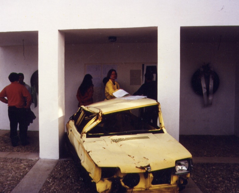 "Marlis places and organizes her show as a pious and courageous provocation, to incorporate those “symbol images” born out of the decay of a taboo-myth (the automobile with its entire world) into the mental landscapes of those who visit the cemetary of Casabermeja in these days."