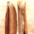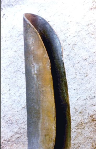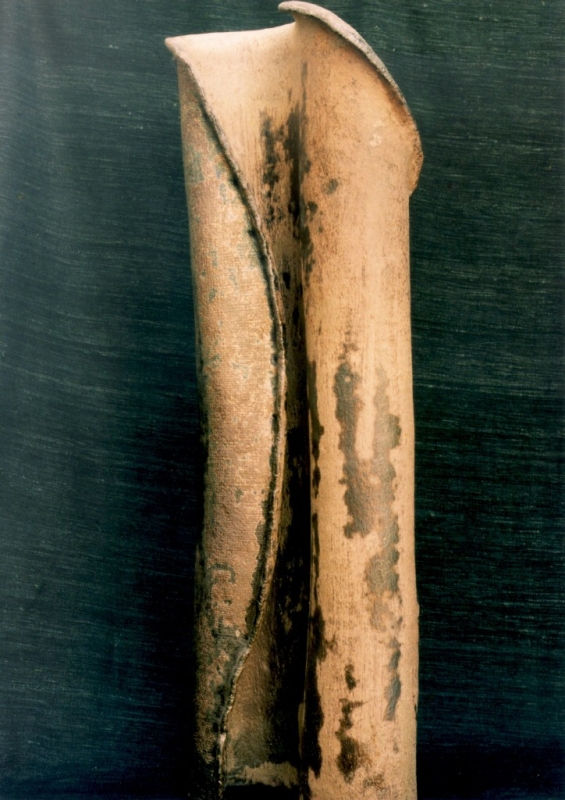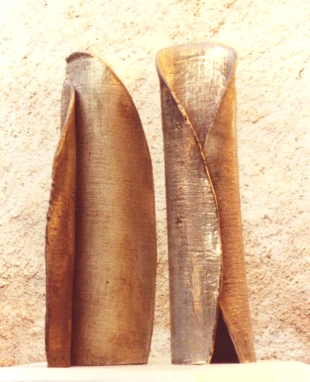 "...tubular forms of exceptional elegance. Confronted bodily with the air, as if winning over its space. Lighter, more fluid and consequently almost ethereal, from the millimetric textures which the reductions plant in them, making them beautiful in the gaze of the spectator."